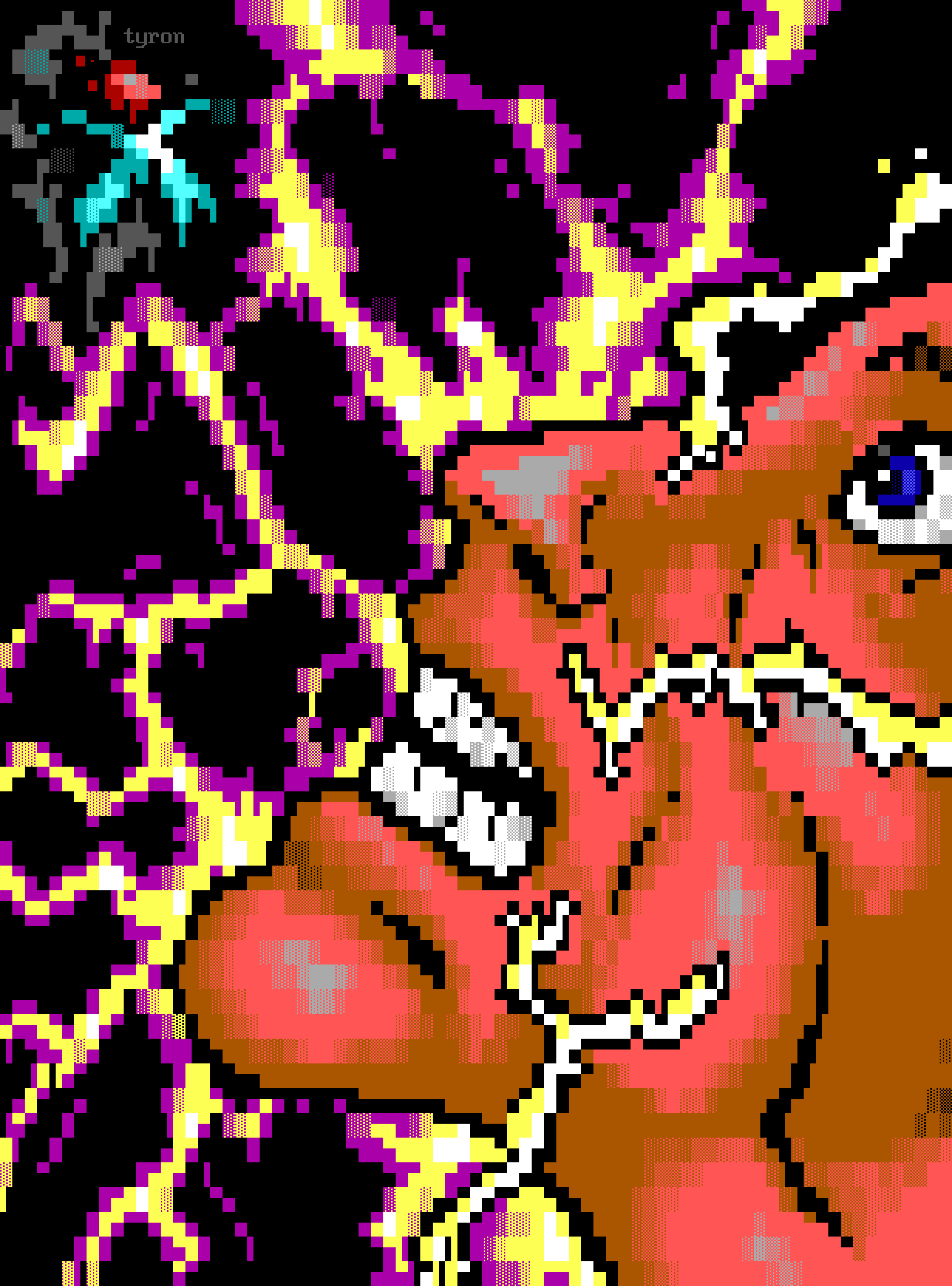 When I was younger, I never really was interested in Computers. OK, games like Sid Meier's Pirates!, Defender of the Crown, or To be on Top were games I loved to play on the C64. But what I mean with interested is more to actively create something with and at a computer. One day my friend René from kindergarten days, asked if could do some graphics for his BBS as I was scribbling and drawing a lot. First I thought that the possibilities on a C64 are way too limited to really draw something on it. But somehow, when I found out that limitations for BBS’s had been even more limited with only 16 colours and pixel as big as a cursor or quarter cursor, my interest was definitely piqued.